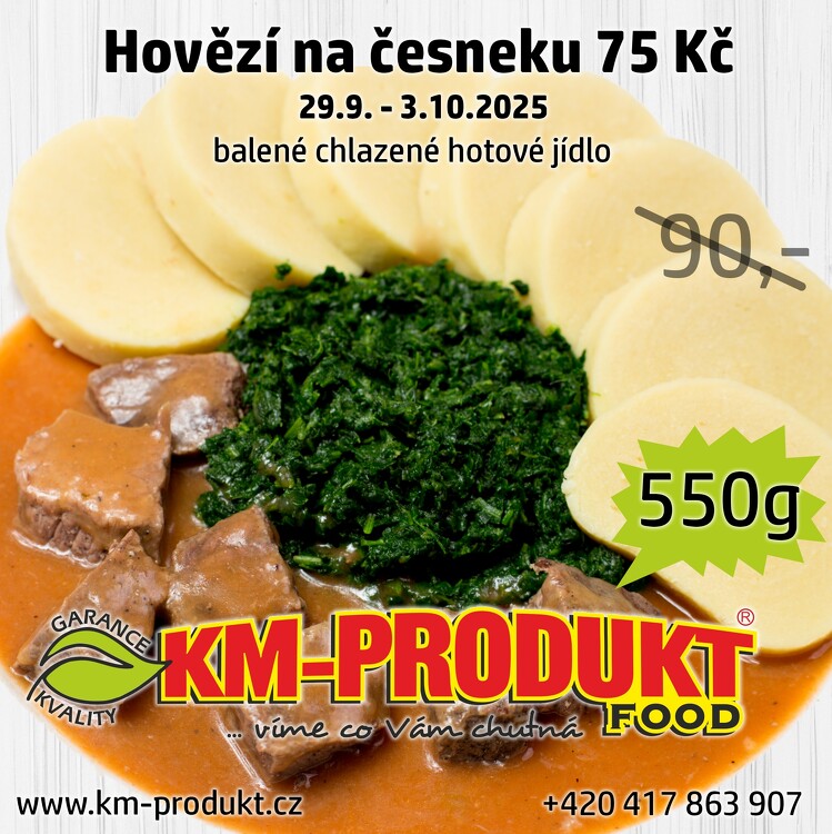 V týdnu 29.9.- 3.10.2025 Hovězí na česneku 550g za 75 Kč
