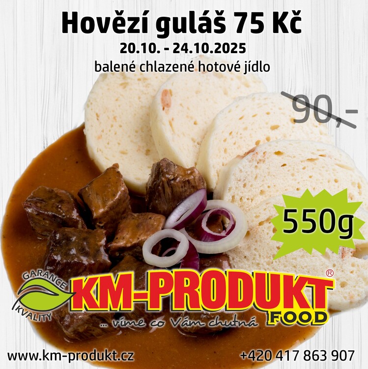 Hovězí guláš 550g za 75 Kč